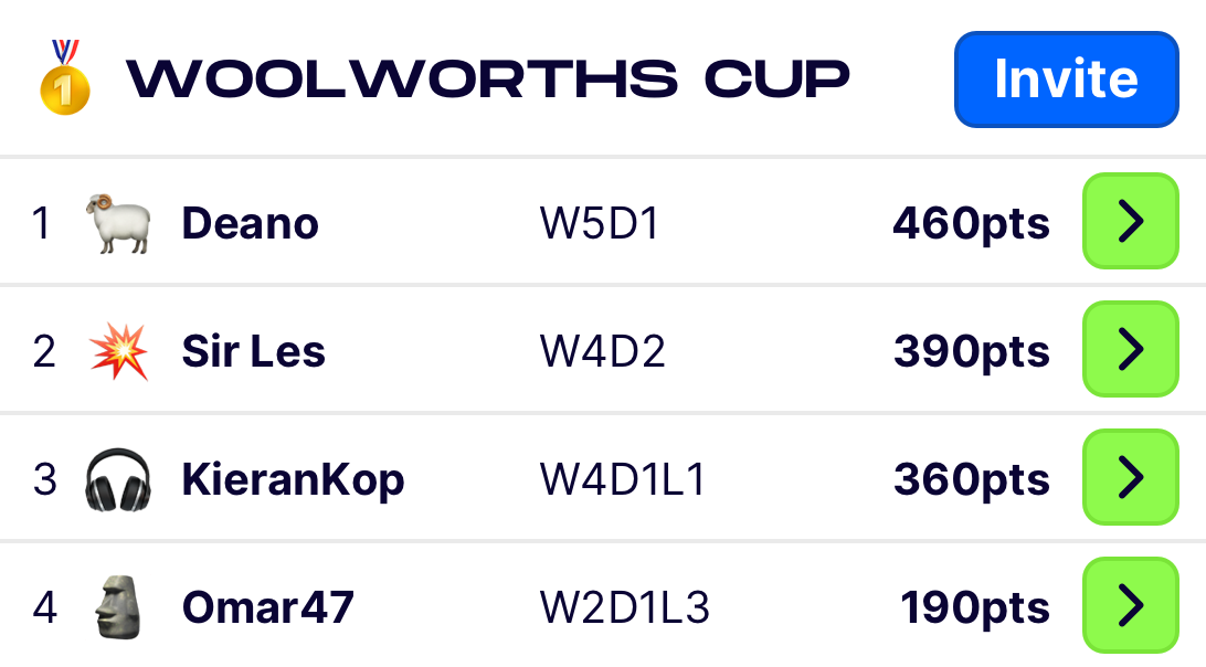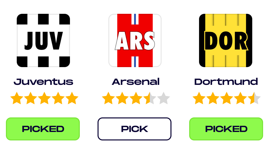 Each week you have a budget to spend on a fresh set of teams from across Europe’s top leagues. These teams will score you points for wins, goals, clean sheets.
