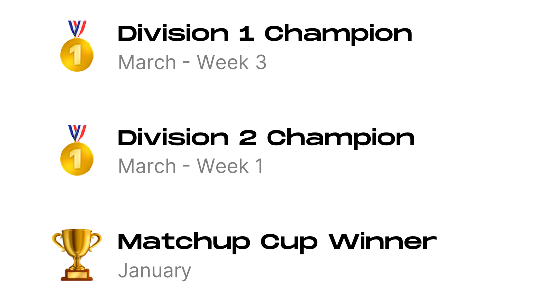 Every league, division and cup crown you've collected throughout your Teamz career.